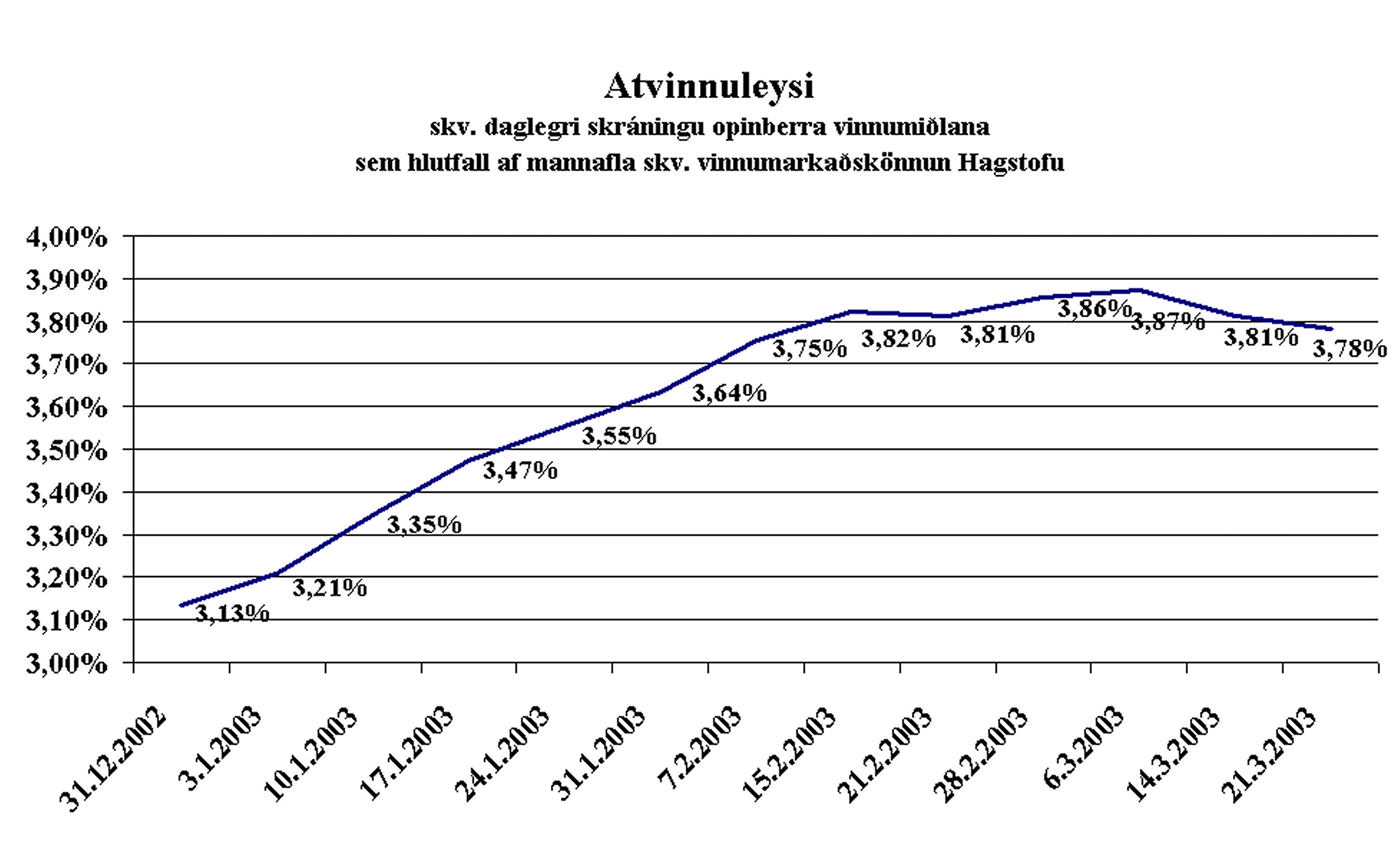sýnir þróunina frá áramótum, þegar atvinnuleysi mældist 3,1%.