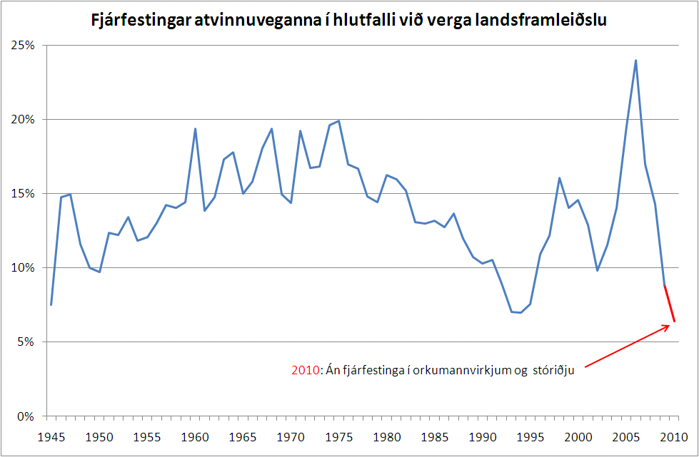 Mikill samdráttur í fjárfestingum atvinnuveganna á síðasta ári og takmörkuð áform um fjárfestingar á árinu 2010 valda því að ástæða er til þess að hafa áhyggjur af þróuninni í atvinnumálum. Óvissa um framtíðina, háir vextir, gjaldeyrishöft, skattahækkanir og minnkandi kaupgeta stuðla almennt að slæmu andrúmslofti fyrir fjárfestingar. Ef dráttur verður á áformum um fjárfestingar í virkjunum og orkufrekum iðnaði á þessu ári eru líkur á því að fjárfestingar atvinnuveganna verði minni í hlutfalli við landsframleiðslu en þær hafa verið frá lokum síðari heimsstyrjaldarinnar.