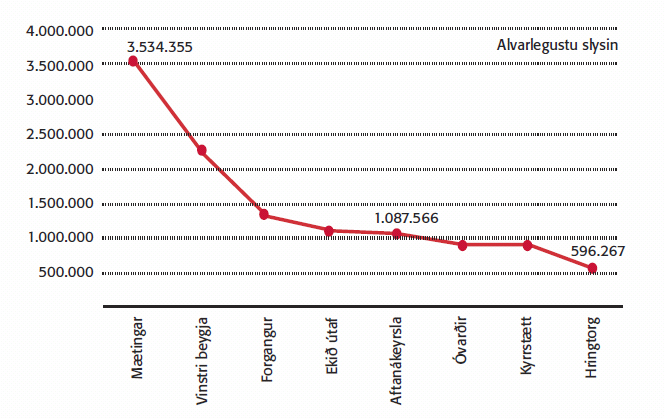 Hvaða slys eru kostnaðarsömust á Suðurlandsvegi?