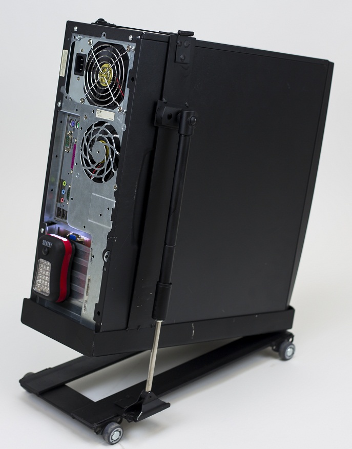 hjólum undir borðtölvuturna með sérstakri pumpu sem fest er við
