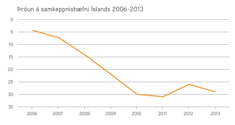 Ísland er í dag í 29. sæti yfir samkeppnishæfustu þjóðir heims skv. IMD rannsóknarstofnuninni í Sviss sem mælir árlega samkeppnishæfni þjóða. Á aðeins sjö árum hefur Ísland fallið niður um 25 sæti á lista IMD en sterk fylgni er á milli samkeppnishæfni og lífskjara.
