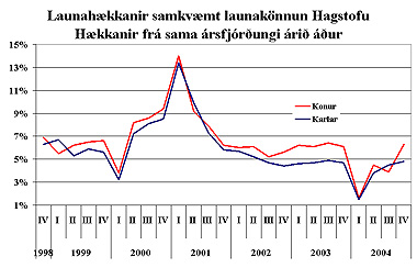laun kvenna um 6,3% en karla um 4,8% frá sama ársfjórðungi árið