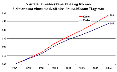 leitt í ljós að laun kvenna hafa hækkað 22 sinnum umfram laun