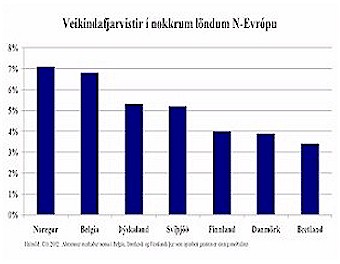 eru fjarvistir verkafólks 5,2%, 7,5% í Svíþjóð og 9,0% í Noregi.