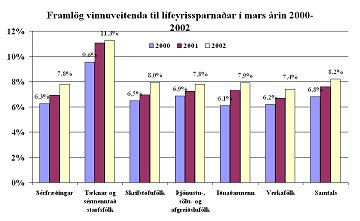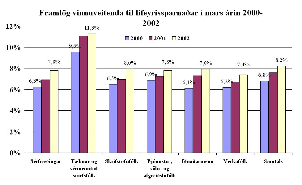 Í mars 2002 var framlag vinnuveitenda orðið 8,2% að meðaltali og