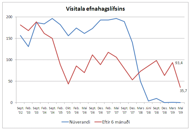 Líkt og sjá má á vísitölu efnahagslífsins eru aðstæður nú afleitar