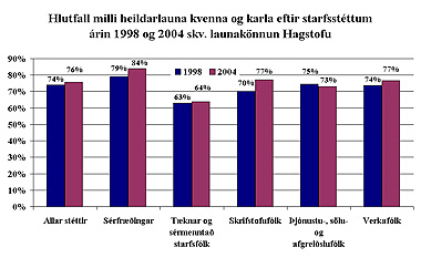 Meðfylgjandi súlurit sýnir hvernig hlutfall heildarlauna kvenna af